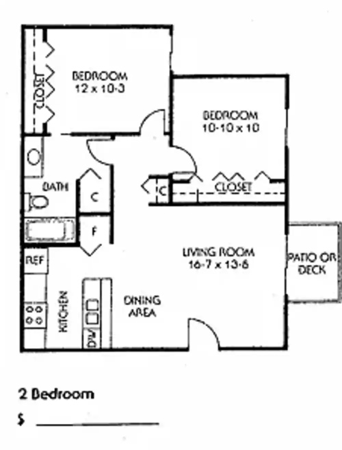 1 & 2 BEDROOM APARTMENTS2 Bed / 1 Bath Floorplans